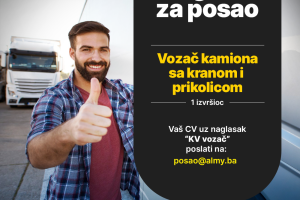 Oglas za posao: vozač kamiona sa kranom – Kompanija ALMY d.o.o. Zenica, sektor transporta objavljuje konkurs za prijem u radni odnos, vozač kamiona sa...