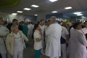 Protestno okupljanje ljekara Kantonalne bolnice Zenica – U Holu glavne zgrade Kantonalne bolnice Zenica održan je skup ljekara članova Sindikata doktora...