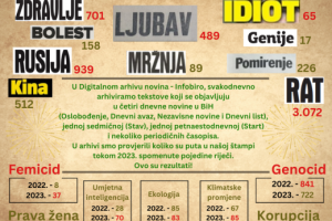 Ljubav je riječ koja se znatno više koristila u bh. novinama u odnosu na mržnju u 2023. Infografika: Mediacentar/Nejra Hasečić Srbijanski dramski pisac i...