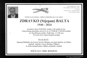 Zdravko Balta, dugogodišnji direktor JU Muzej grada Zenice, preminuo je u 84. godini života. Balta je dužnost direktora preuzeo krajem 1988. godine, u veoma...