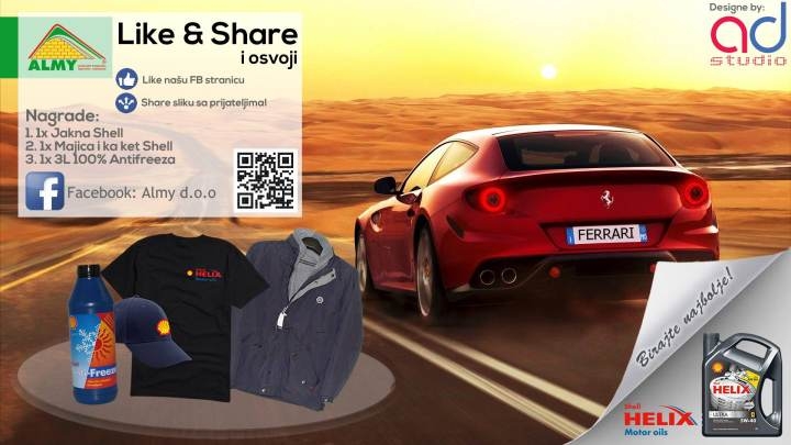 Nova nagradna igra kompanije Almy d.o.o. Like & Share, sretne dobitnike očekuju veoma vrijedne nagrade. Da bi ste učestvovali u nagradnoj igri potrebno je...