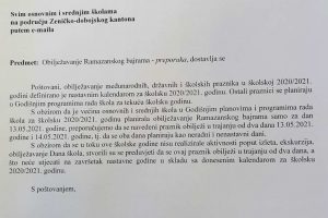 Ministar obrazovanja, nauke, kulture i sporta Spahija Kozlić potpisao je preporuku osnovnim i srednjim školama u Zeničko-dobojskom kantonu, koja – po...