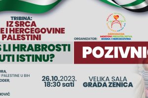 ASOCIJACIJA MOSTOVI PRIJATELJSTVA BiH ORGANIZUJE U ZENICI TRIBINU POD NAZIVOM: “IZ SRCA BOSNE IZ HERCEGOVINE PALESTINI” “IMAŠ LI HRABROSTI...