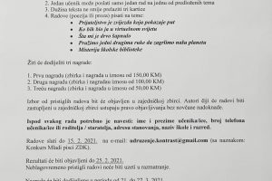 Raspisan Javni konkurs za prijavu radova za prvu zbirku Mladi pisci ZDK – Udruženje za kulturu Kontrast raspisalo je Javni konkurs / natječaj za prijavu...