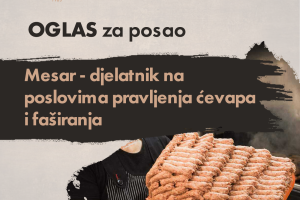 Usljed ukazane potrebe za prijem zaposlenika u radni odnos u firmi “Ćevabdžinica Bešlić”, objavljuje se oglas za sljedeće radno mjesto: Mesar...