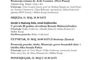 Prvi bibliotečki program na rasporedu je danas (ponedjeljak, 9. maj, 18.30 sati): predstavljanje romana “Sulejmin krug”, “Metak” i...