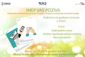 IMEP: radionica za građane-novinare Muzej Grada Zenice 23. novembar 19h – U posljednje vrijeme u svijetu su vrlo popularni građani-novinari, pa pojedini...