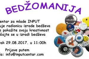 Centar za mlade INPUT organizuje kreativnu radionicu izrade bedževa pod nazivom BEDŽOMANIJA u utorak 29.08.2017. u 11:00h. Izrađivati ćemo bedževe koristeći...