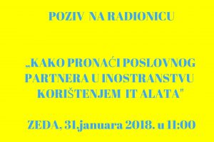 Obavješavamo vas da Zenička razvojna agencija ZEDA i Udruženje poslodavaca Zenica, organizuju radionicu „KAKO PRONAĆI POSLOVNOG PARTNERA U INOSTRANSTVU...