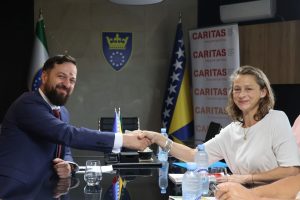 Ministar obrazovanja, nauke, kulture i sporta u Vladi Zeničko-dobojskog kantona Mirza Mušija i direktorica Caritasa Švicarske u Bosni i Hercegovini Anna Goss...