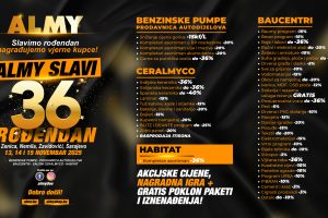 Kompanija Almy slavi 36. rođendan! Tri dana velikih sniženja, akcija i nagradna igra!- Kompanija Almy slavi 36. rođendan! Od 13. do 15.11.2025. godine očekuju...
