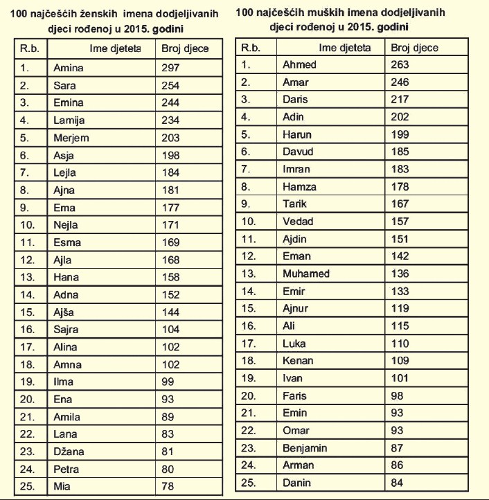 Koja su imena najpopularnija u FBiH?- Bosanci i Hercegovci, prema podacima Federalnog zavoda za statistiku, ne odstupaju mnogo od omiljenih imena u posljednjih...
