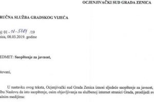 OCJENJIVAČKI SUD GRADA ZENICA STRUČNA SLUŽBA GRADSKOG VIJEĆA Broj: 01 – tJI -S1RI 119 Zenica, 08.03.2019. godine PREDMET: Saopštenje za javnost...