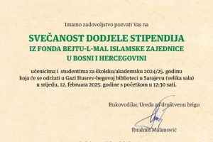 Ured za društvenu brigu Rijaseta Islamske zajednice u Bosni i Hercegovini organizira svečanu dodjelu stipendija iz Fonda Bejtul-mal za školsku/akademsku...