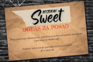 Oglas za posao: konobar, pizza majstor i kuhar Caffe-slastičarna-pizzeria “SWEET” – Zbog povećanja obima poslovanja potrebno pizza majstor i...