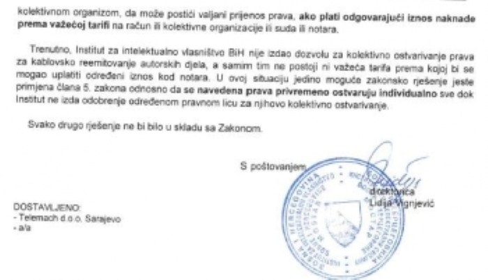 Kada se uspostavi bosanskohercegovačka agencija koja će po zakonu ubirati naknade za korištenje audiovizuelnih (av) prava Telemach će sve retroaktivno platiti...