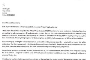 Saopćenje za javnost Gradske uprave Zenica – Dopis Toplana d.o.o. Zenica – Generalni direktor joint- venture kompanije “Toplana” d.o.o...