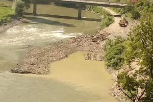 FOTO: Završno uklanjanje materijala iz korita rijeke Bosne na lokalitetu neizgrađene brane HE Vranduk – Nakon što se rijeka Bosna, gotovo, povukla u...