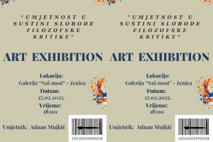 Udruženje Naš most sa zadovoljstvom najavljuje otvaranje treće samostalne izložbe mladog bh. umjetnika Adnana Mujkića, pod naslovom „Umjetnost u suštini...