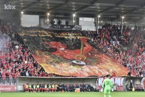 Koreografija navijača Veleža na finalu Kupa BiH: Prodana duša neka pati, vječno će se đavolom zvati- Najvatreniji navijači Veleža na zapadnoj tribini stadiona...