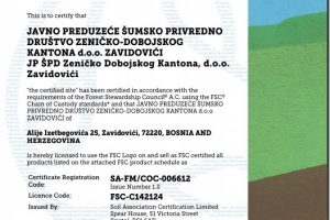 JP “ŠPD ZDK” d.o.o. Zavidovići postalo vlasnik međunarodnog FSC certifikata za ŠGP “Gornjebosansko” – Porast ekološke svijesti...