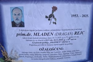 Sahrana primarijusa doktora Mladena (Dragana) Rejca obavit će se sutra, u petak 28. novembra 2025. godine, na Gradskom groblju “Prašnice” u Zenici...