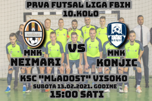 Prva futsal liga Federacije BiH – zenički „Neimari“ domaćini ekipi Konjica u Visokom- Predstojećeg vikenda, 13.i 14.2.2021.godine igra se 10.kolo u Prvoj...