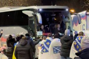 Više hiljada navijača nogometne reprezentacije Bosne i Hercegovine je dočekalo autobus s nogometašima naše domovine pri ulasku na stadion Ernst Happel u Beču...