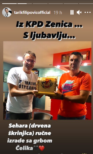“Milijunska ekipa, realno”, napisao je Amel u komentaru. “Kraljica i dva cara”, “Lijepi ste, ali dama vas je zasjenila”, “Svoj na svome, ništa ljepše”, “Svaka čast, sjajno”, još su neki od komentara. Tarik je otkrio i da je dobio poklon s grbom zeničkog nogometnog kluba Čelik. “Iz KPD Zenica s ljubavlju”, napisao je uz fotografiju na kojoj mu prijatelj uručuje škrinjicu. “Sehara (drvena škrinjica) ručne izrade s grbom Čelika”, napisao je Tarik i dodao dva srca u bojama tog nogometnog kluba, piše zagrebački Index.hr.