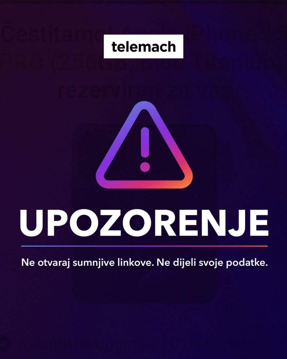 ❗ Ne otvarajte neprovjerene linkove, ne dijelite svoje podatke i ne nasjedajte na ovakve poruke.