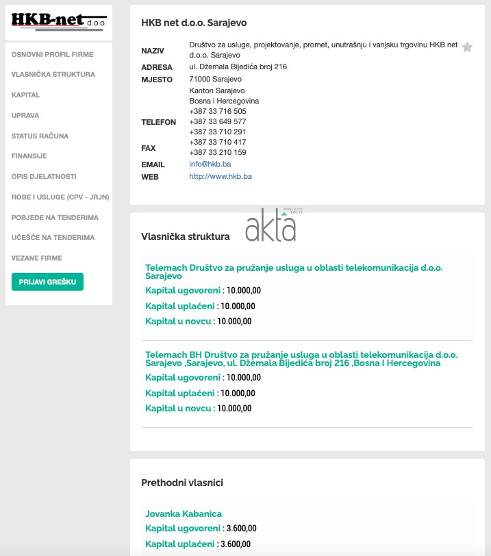 Telemach je u HKB netu imao udio od 64 posto, a ostatak je bio u vlasništvu Jovanke Kabanice.