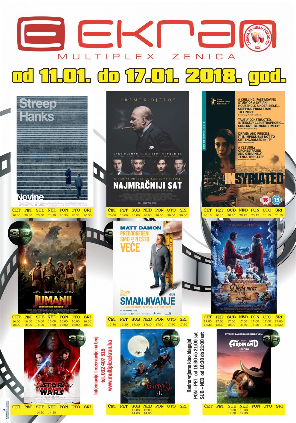 Tri nova filma u Multiplex Ekranu Zenica – U Multiplexu Ekran od 11. januara ne propustite pogledati biografsku ratnu dramu “NAJMRAČNIJI SAT”, biografski i hisorijski film u režiji Stevena Spilberga “NOVINE” i dramu “IN SYIRIA”