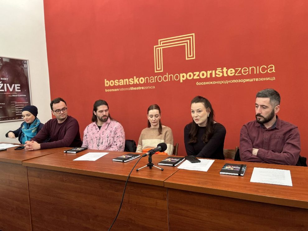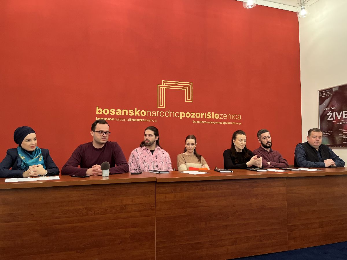 Povodom premijerne izvedbu predstave „Žive“ prema tekstu Aïche Euzet, u režiji Júlija Cerdeire, a u sklopu projekta „The Sexual Theatre – Feminističko čitanje klasika“ i u koprodukciji Bosanskog narodnog pozorišta Zenica, Teatra Circo de Braga (Portugal), Grad teatra Budva (Crna Gora) i Univerziteta Paul Valéry, Monpelije (Francuska) danas je održana konferencija za medije.