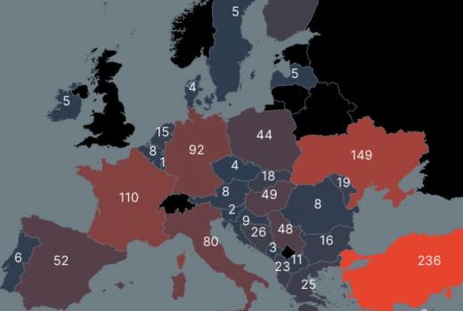 Od navedenih slučajeva, 602 se odnose na zemlje članice Evropske unije (EU), dok je 515 registrovano u zemljama kandidatkinjama EU. U izvještaju se navodi da su u 2023., u Evropi ubijena tri medijska radnika, dva u Ukrajini i jedan u Albaniji.