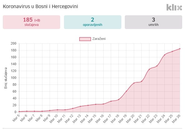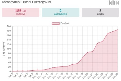 Najviše pozitivnih na koronavirus, njih 26, je u Hercegovačko-neretvanskom kantonu gdje je zabilježena i lokalna transmisija.
