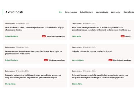 U cilju jednostavnijeg i preglednijeg rada Gradske uprave Zenica, kao i informisanja građana o svim aktuelnostima u Gradu Zenica, danas je sa radom počela potpuno nova, unaprijeđena i redizajnirana, službena WEB stranica Grada Zenica.