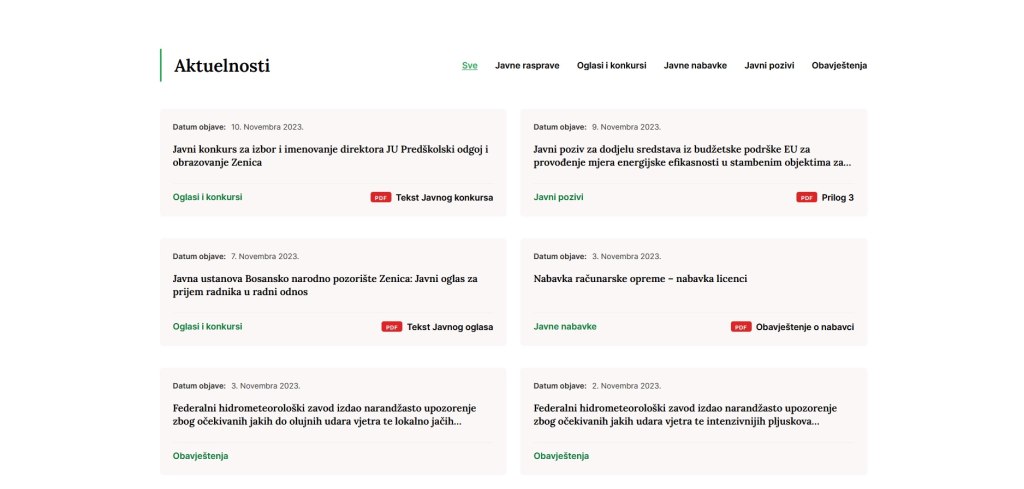 Ističe da je dosadašnja WEB stranica, također, itekako bila prilagođena potrebama građana da budu informisani o svim dešavanjima u Gradskoj upravi Zenica, međutim, s obzirom da tehnologija napreduje iz dana u dan odlučeno je da se pristupi izradi potpuno nove, moderne, web stranice koja će i svojim izgledom i funkcionalnošću opravdati potrebu za njenom izradom.