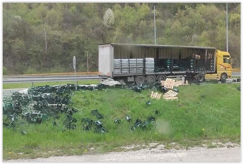 U Lašvi kod Zenice iz kamiona ispale gajbe s pićem