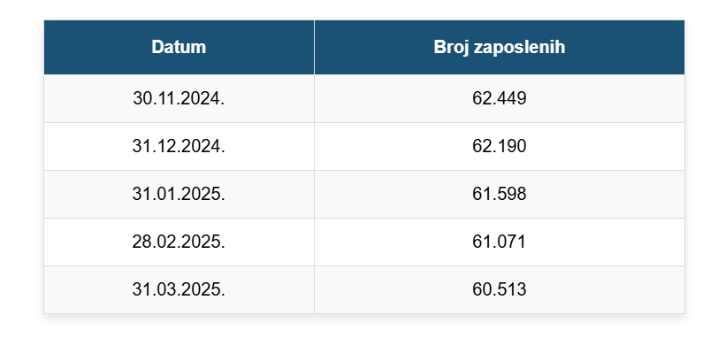 Prema službenim evidencijama Porezne uprave FBiH, u periodu od novembra 2024. do marta 2025. izgubljeno je gotovo 2.000 radnih mjesta.