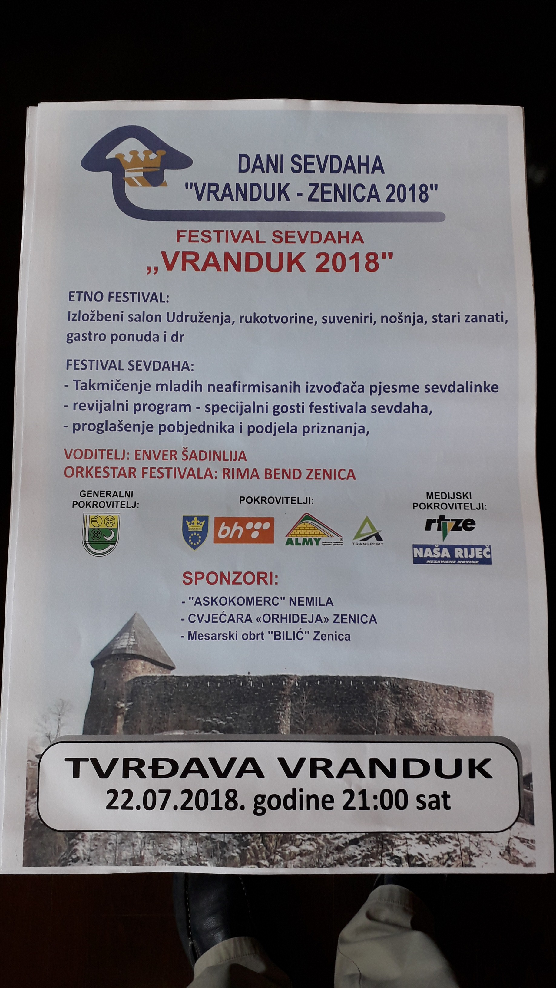 Da ponovimo, centralni dio manifestacije održava se u nedjelju 22.07.2017. godine od 21,00 sat u tvrđavi Vranduk, pod nazivom Festival sevdaha Vranduk 2018.