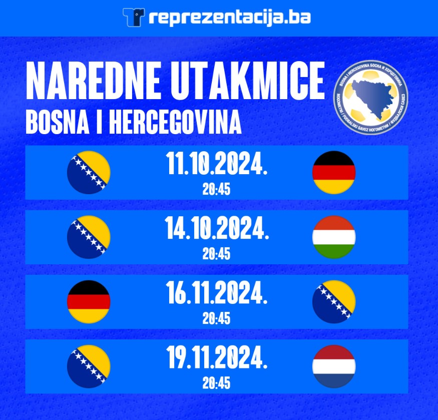 Bosna i Hercegovina u oktobru igra dvije domaće utakmice.