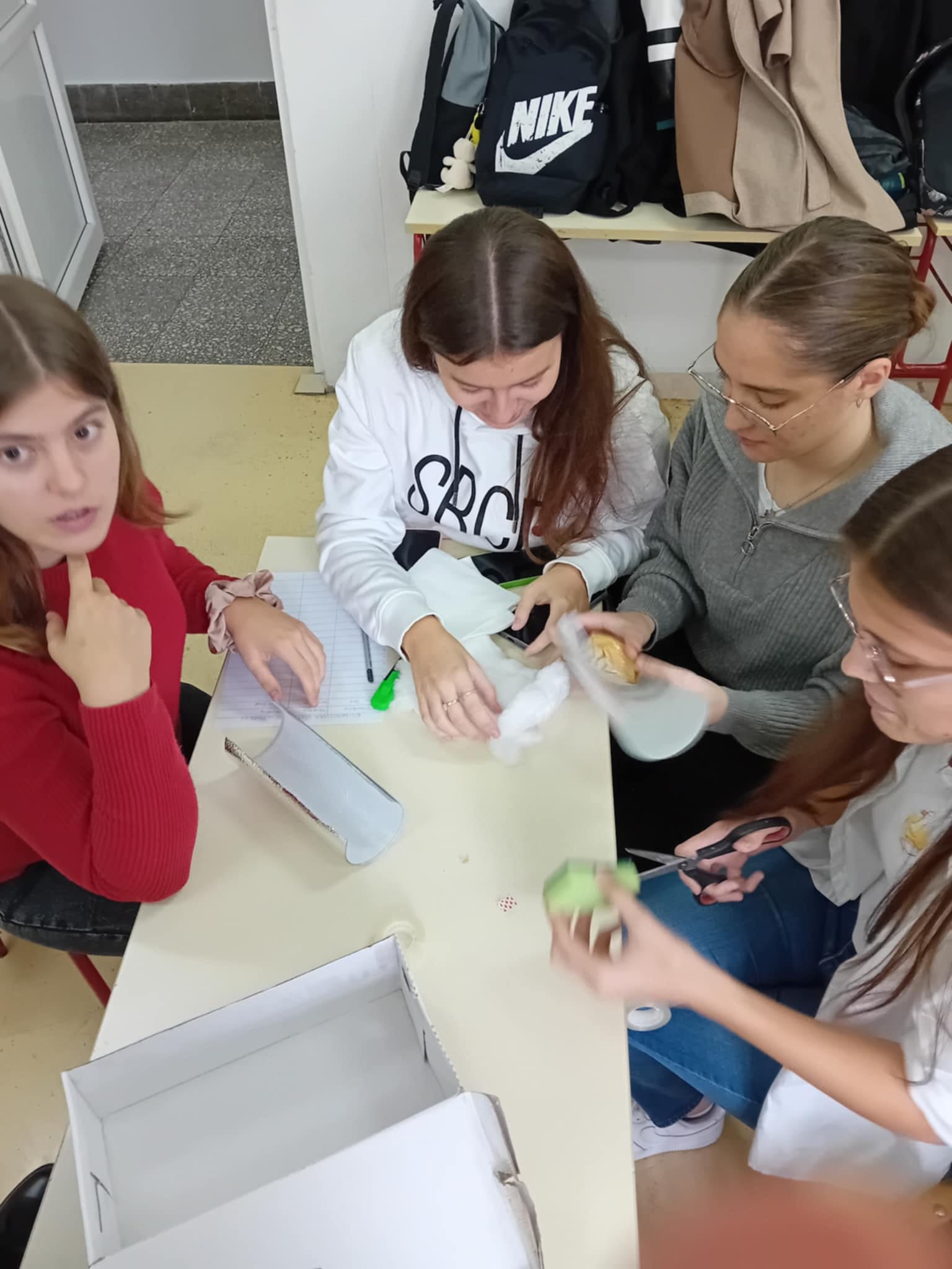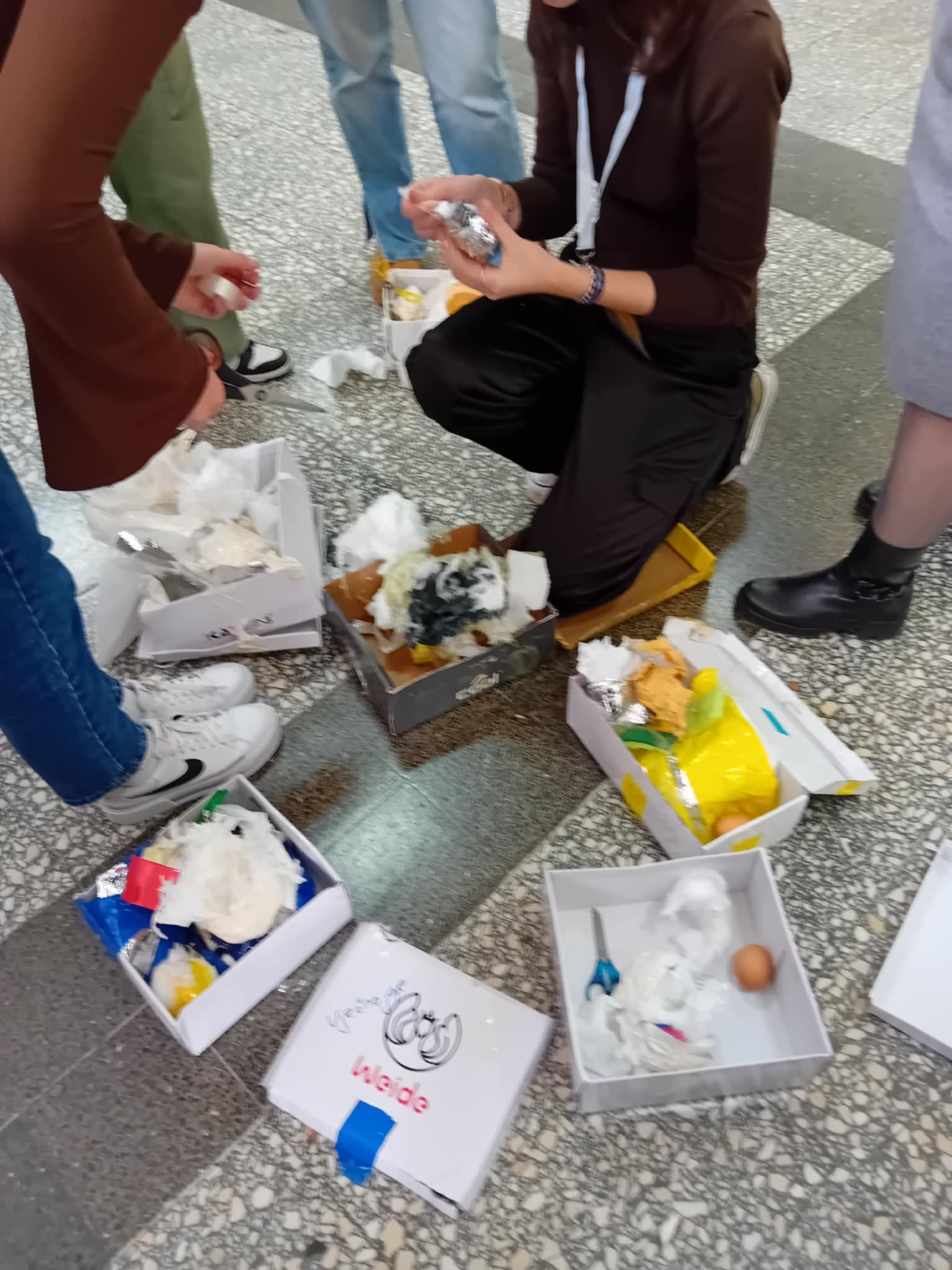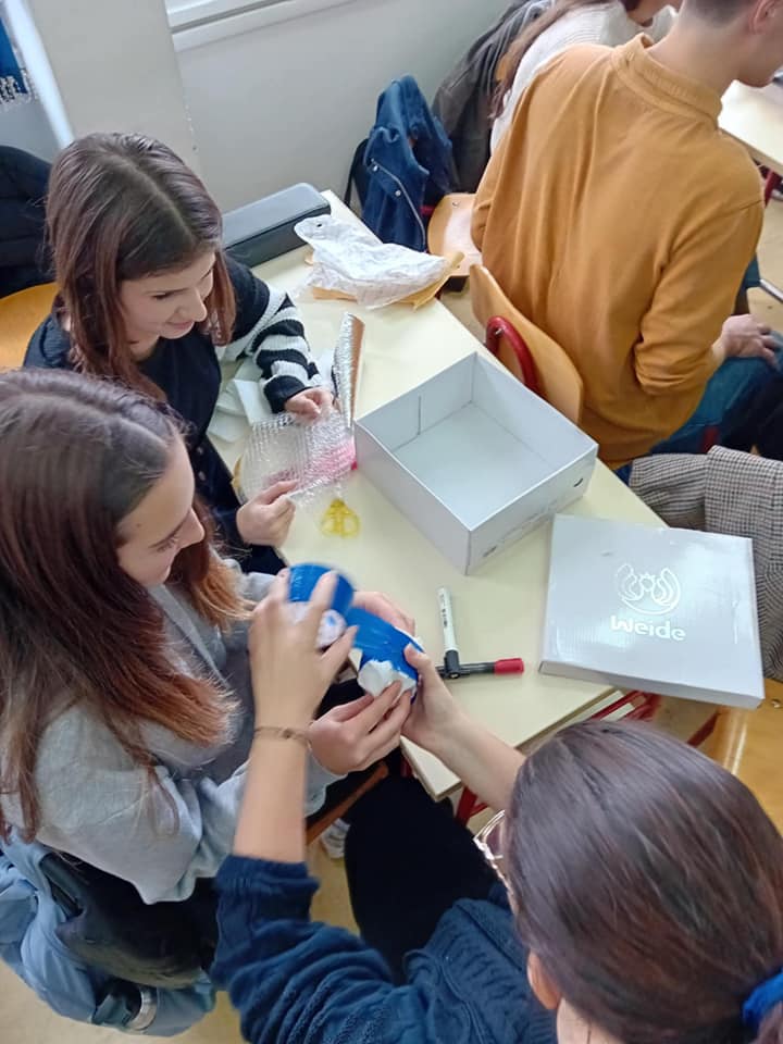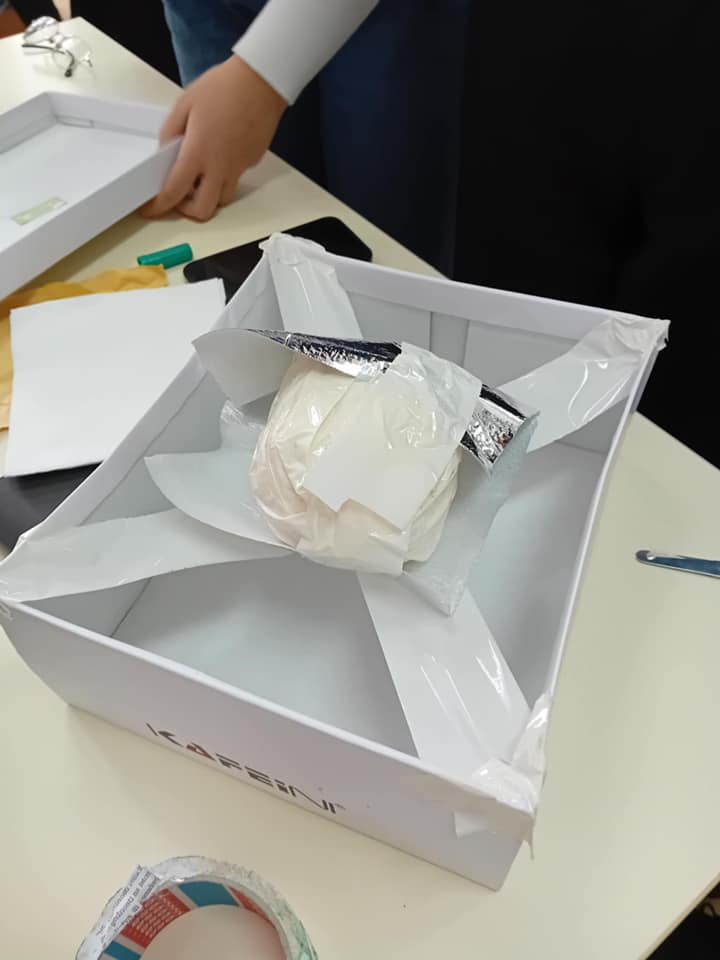 Poslije desetak minuta predviđenih za pakovanje krenuli smo u provjeru rezultata. Nakon udaranja i guranja kutija s jajima, one su završile na prizemlju. Rezultati su četiri očuvana i četiri polomljena jajeta, što znači da su naši učenici na dobrom putu da postanu solidni konzervatori. Najbolji su dobili aplauze i ovacije.