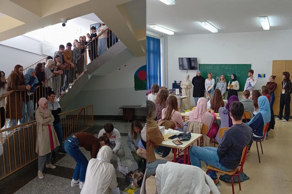 Učenici koji su prenoćili u muzeju predstavili su nam Zemaljski muzej BiH, njegovo osnivanje i rad, šta se tamo može naučiti, vidjeti i sačuvati a potom su podijelili zadatke učenicima konzervatorima.