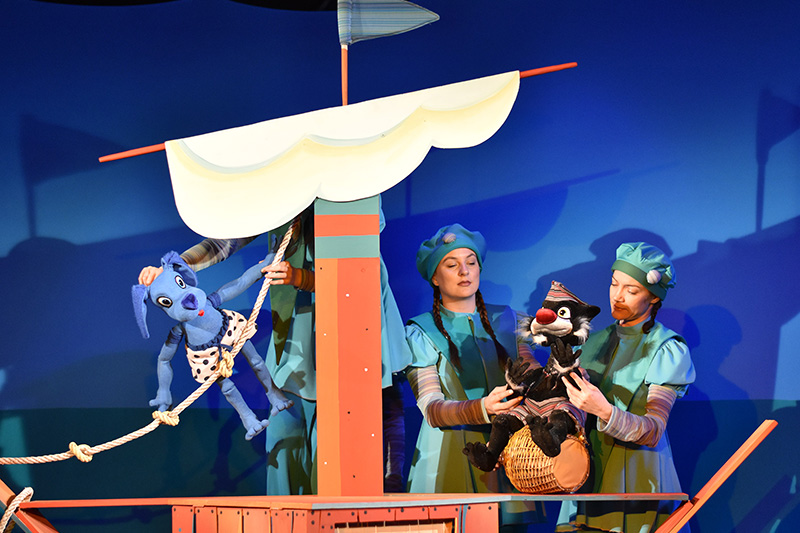 Predstava je „Psić boje neba“ nastala u produkciji Dječije, omladinske i lutkarske scene Bosanskog narodnog pozorišta Zenica. Prema riječima reditelja Kovačovskog, „’Psić boje neba’ je tekst koji govori o tome kako bi se trebalo boriti za svoje mjesto ispod neba.Mali pas koji se rodio plave boje pati od kompleksa niže vrijednosti i zato bježi od problema. U tekstu ga njegov novi prijatelj mornar Džef prihvata onakvog kakav jeste i iz te ljubavi Plavi Psić pronalazi svoj način da se bori sa problemima koji ga okružuju. Naravno, priča ne bi bila zanimljiva da intrigu ne pokreće antagonista Crni Mačak… Ipak, kroz tekst naše predstave i kroz prikazivanje drugačijeg, dešava se spoznaja psa čiji lik nikoga neće ostaviti ravnodušnim.“ Tekst i režiju predstave potpisuju Darko Kovačovski i Nadia Vasileva, kao i kreaciju i izradu lutaka. U predstavi igraju: Snežana Vidović, Adna Hasanić, Tamara Milićević-Stilić i Anđela Ilić. Scenografija i kostimografija predstave je povjerena Nadiji Vasilevoj, a izbor muzike Darku Kovačovskom.