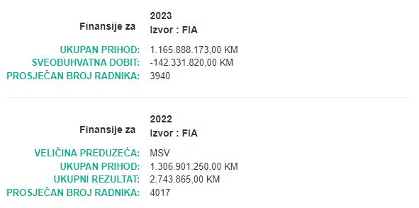 Podsjetimo, Elektroprivreda BiH je prema podacima FIA agencije, 2023. godinu završila u minusu od preko 142,3 miliona KM, dok je samo godinu ranije poslovala pozitivno.
