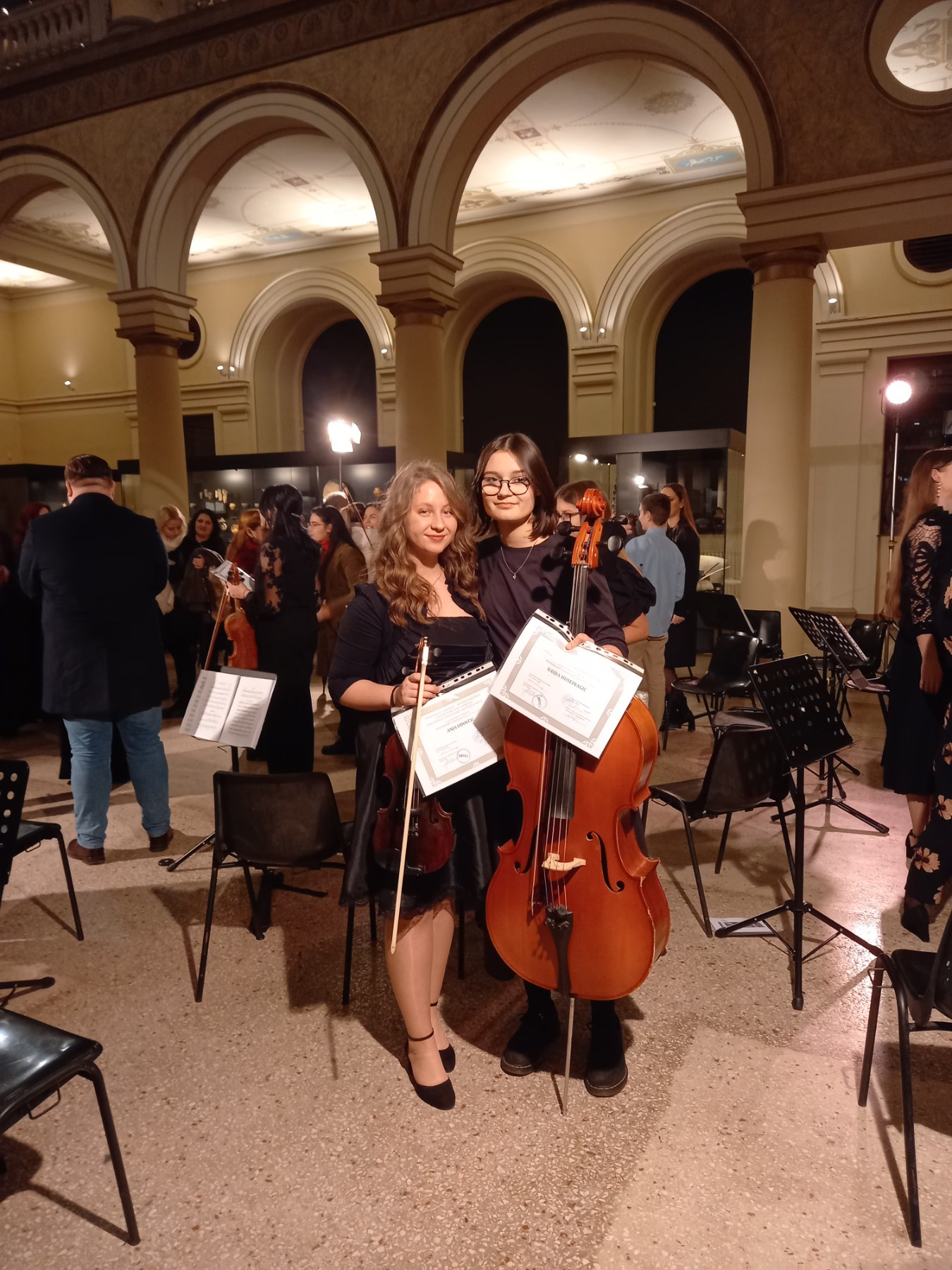 Kao mladi virtuozi Srednje muzičke škole u Zenici Naida Huseinagić (violončelo), Eva Čalija (violončelo) i Anja Udovčić (violina) pridružile su se članovima orkestra Muzičkog kampa za mlade virtuoze koji je održao koncert “Vivaldi- Četiri godišnja doba” u Zemaljskom muzeju BiH u Sarajevu.