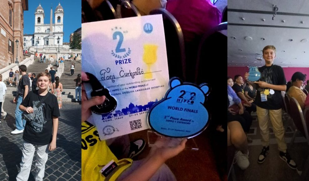 Učenik sedmoga razreda Osnovne škole Katoličkog školskog centra „Sveti Pavao“ iz Zenice Toni Ćurković je proteklih dana boravio u Rimu, u pratnji nastavnice Line Softić i sudjelovao na natjecanju svjetskih razmjera – 11th INTERNATIONAL HIPPO ENGLISH OLYMPIAD na kojem je osvojio visoko 2. mjesto i srebrnu medalju.