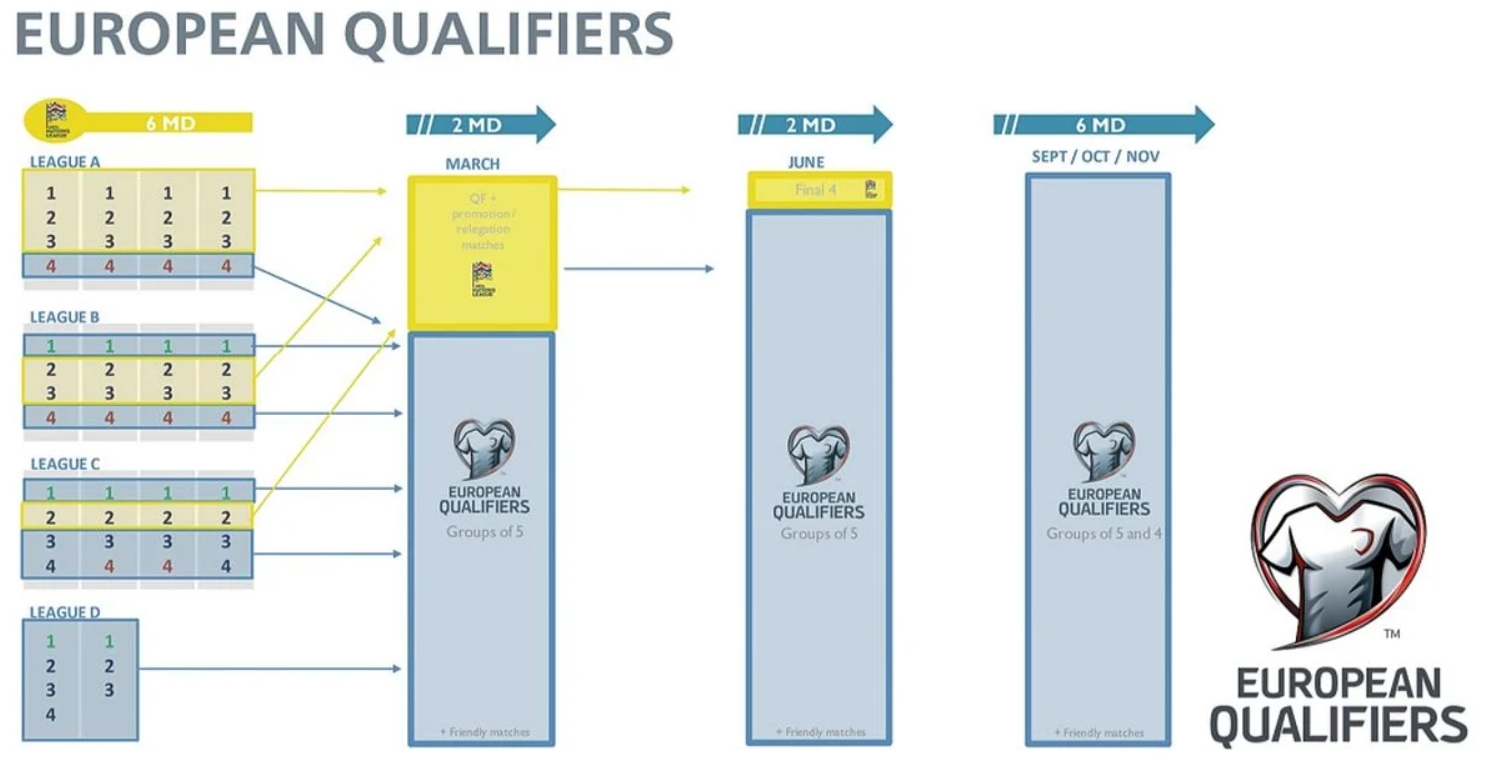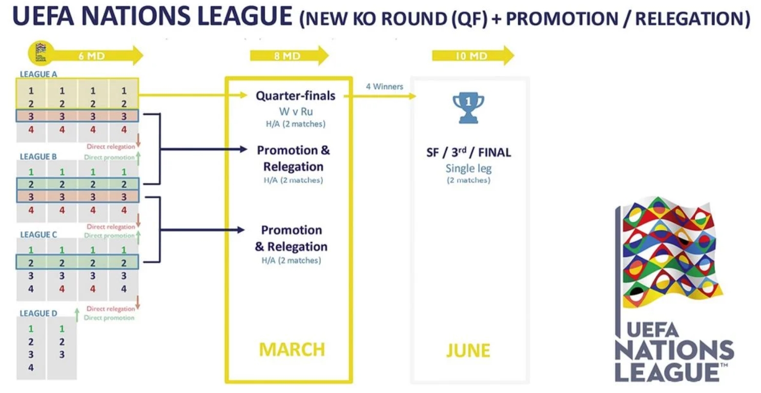 Novi baraž će biti kreiran u Ligi nacija. Prvoplasirani i drugoplasirani u grupama Lige A će igrati utakmice četvrtfinala u “domaćin-gost” sistemu, a pobjednici će izboriti plasman na Final Four.