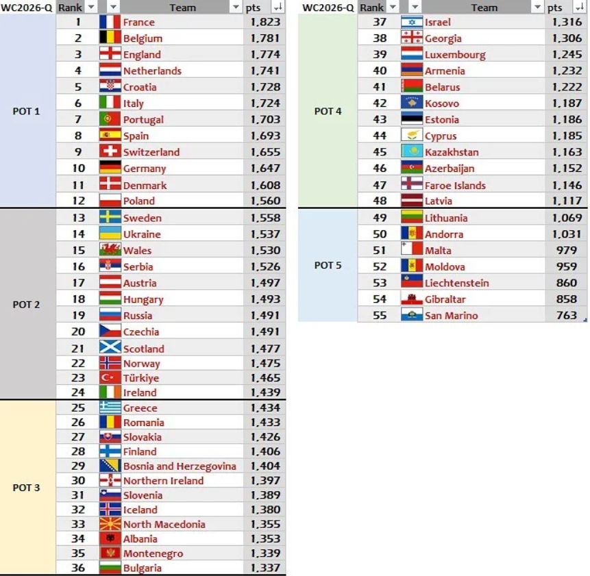 Uoči žrijeba kvalifikacija za SP 2026. godine u obzir će se uzimati FIFA rang lista gdje fudbalska reprezetnacija i ne kotira baš najbolje i trenutno je na 57. mjestu sa 1404 boda.