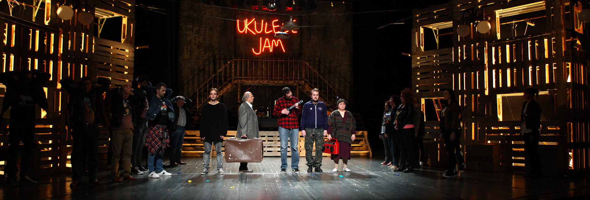 „Ukulele jam“ premijerno izvedena za 70. rođendan Bosanskog narodnog pozorišta Zenica, 25. februara 2020. godine, i predstava je o odrastanju i formiranju identiteta u periodu devedesetih kada je jedini važan identitet bio onaj nacionalni. Glavni junak, tinejdžer Miki, neizmjerno se radovao ljetu 1992. kada će konačno napuniti petnaest godina, početi izlaziti u grad, prvi put se poljubiti, a njegov brat Neno konačno će se vratiti sa studija u Sarajevu. Međutim tog ljeta ’92, Neno je odveden u logor, a Miki zajedno sa svojim roditeljima završava u izbjegličkom kampu u Hrvatskoj. „Ukulele jam“ je priča o odrastanju i formiranju identiteta u periodu devedesetih kada je jedini važan identitet bio onaj nacionalni. U predstavi igraju sve glumice i glumci iz ansambla Bosanskog narodnog pozorišta, glumice i glumci koji su stalni saradnici BNP-a i gostujući glumac Zijah Sokolović.
